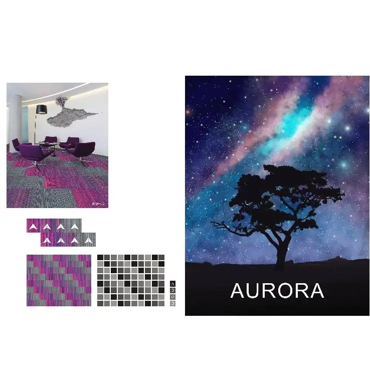 The Aurora Series Carpet Tile brings vibrant energy with its stunning blend of deep purples, magentas, and greys, inspired by the beauty of the night sky. Perfect for modern interiors, its modular design allows creative layouts that enhance office, lounge, or hospitality spaces. Durable and easy to maintain, these carpet tiles combine style and function, transforming any floor into a work of art.